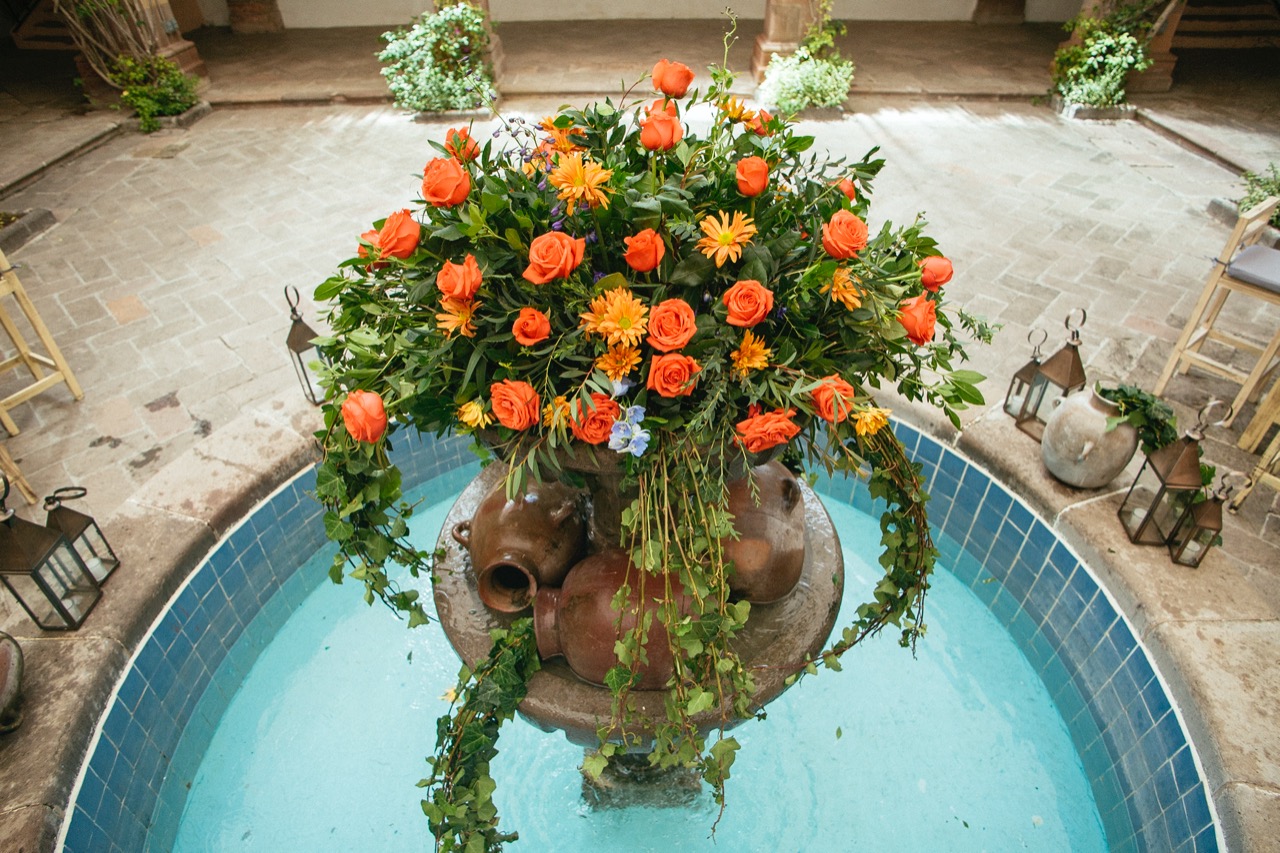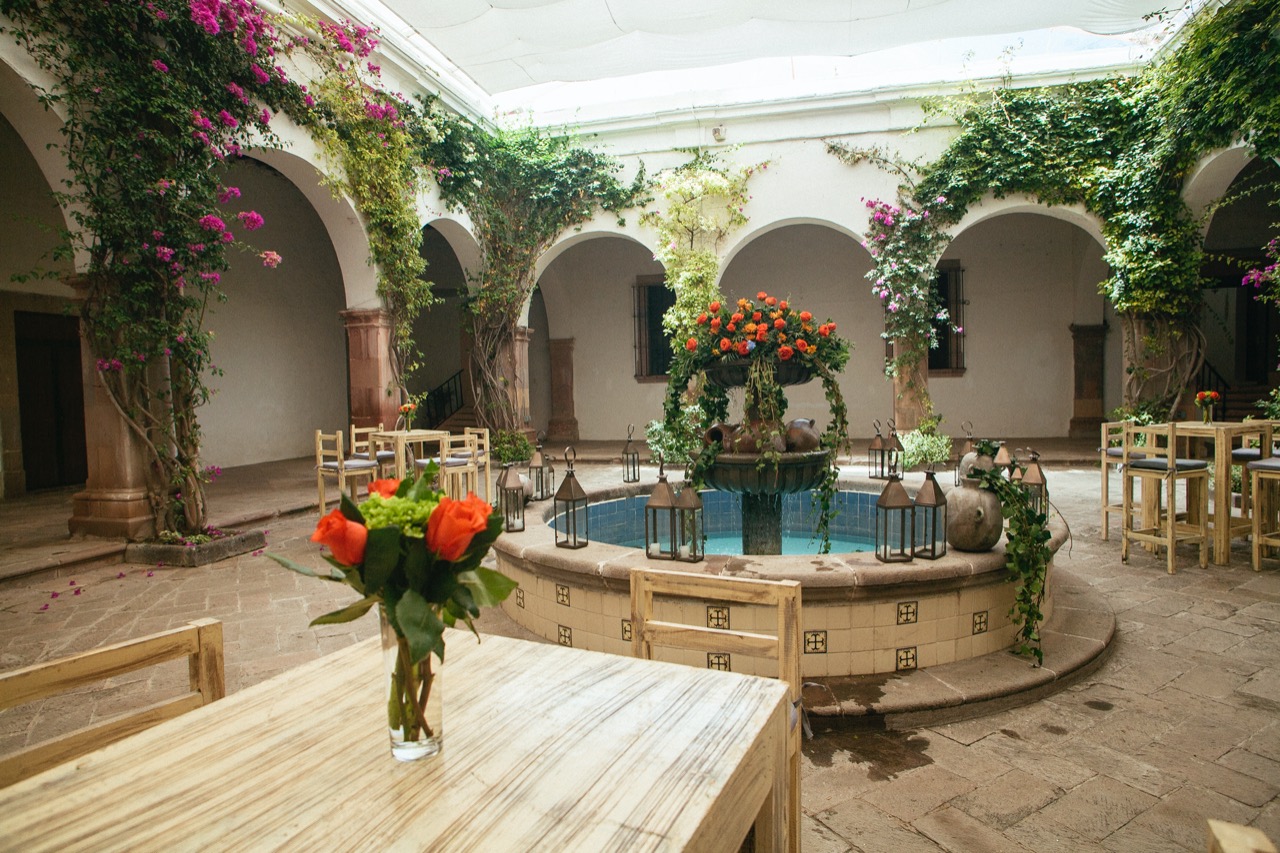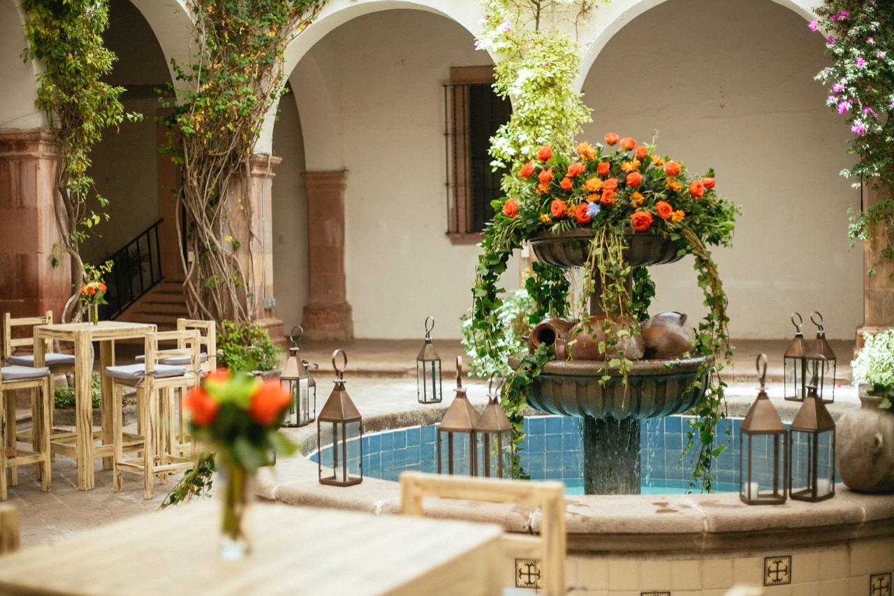 - Brief: Las flores y sus colores fueron elegidos cuidadosamente para crear felicidad y armonía en el evento. El patio con su fuente central, marcaron la diferencia. Los centros de mesa en diferentes estilos se fusionaron con la naturaleza del lugar y llenaron de elegancia esta boda.